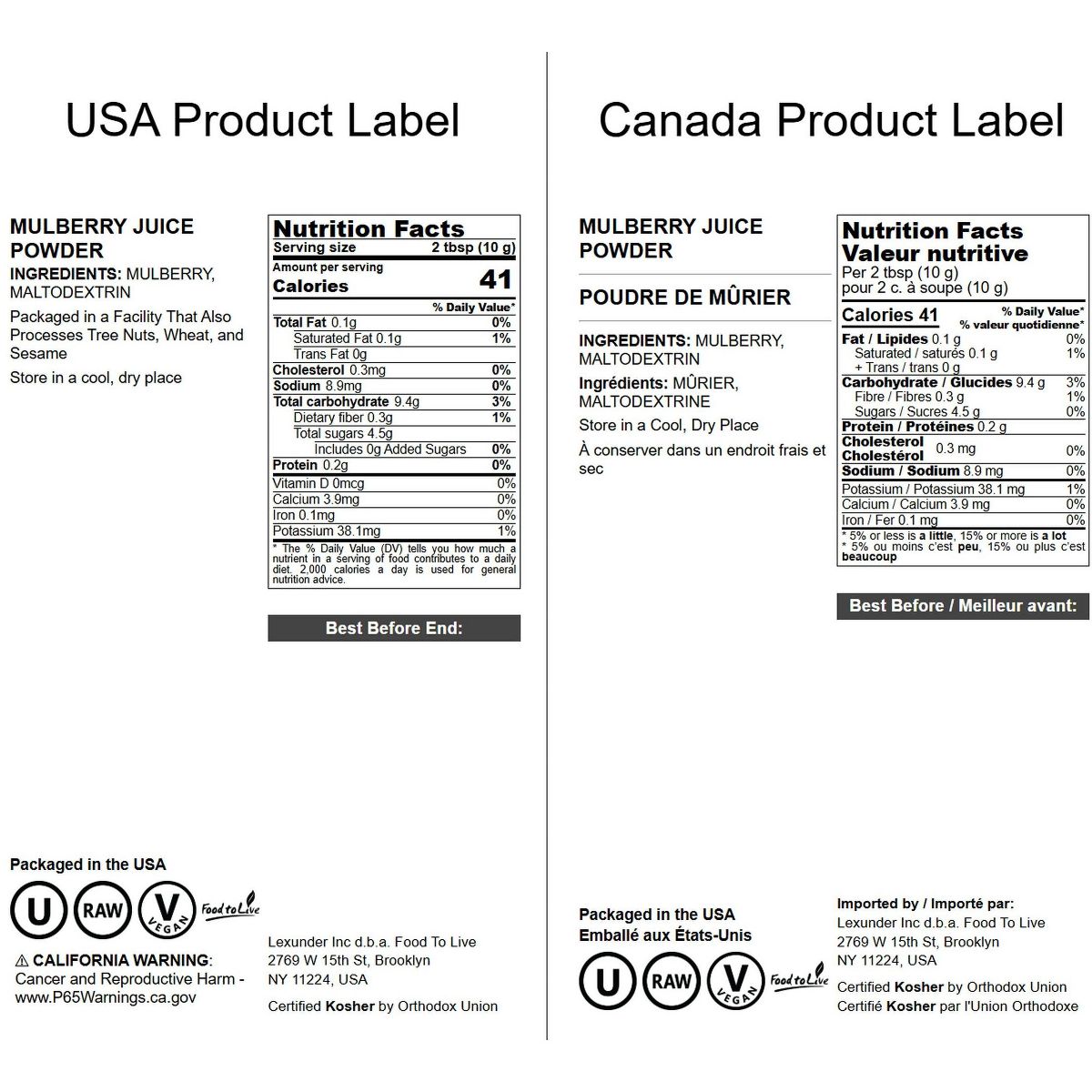 Polvo de Jugo de Mora de Food to Live. Disfruta el sabor intenso y natural de la baya en su versión concentrada en polvo, ideal para tus recetas y bebidas.