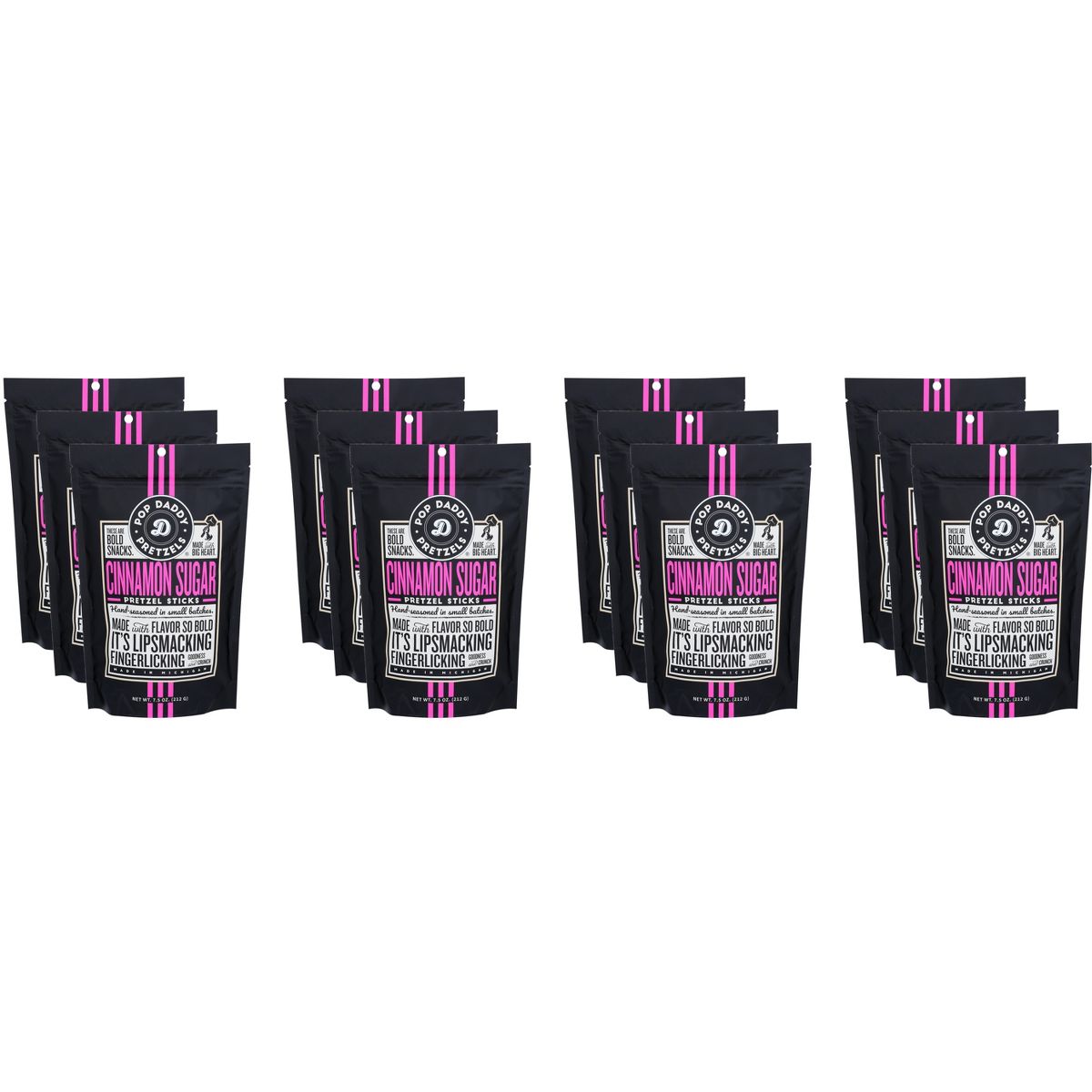 Pop Daddy Pretzels Palitos de Pretzel con Canela y Azúcar – Caja con 12 – 7.5 oz