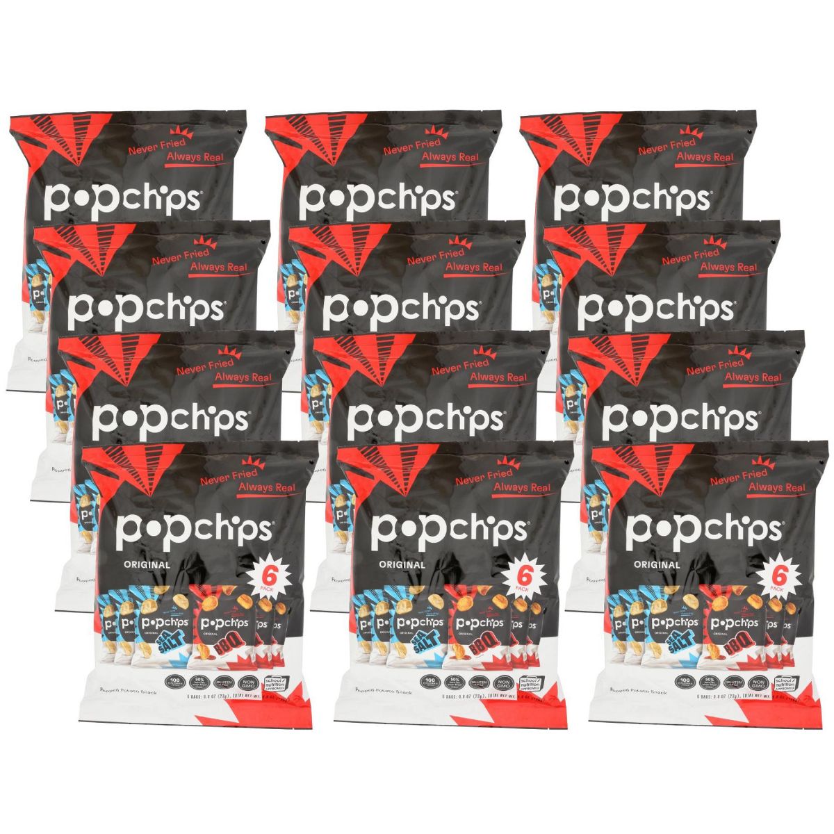 Popchips Papas Horneadas Sabor Sal de Mar y BBQ – Caja con 12 paquetes de 6, 0.8 oz