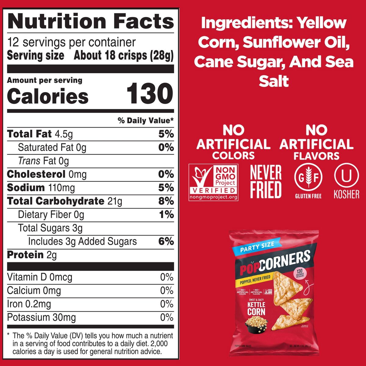 Disfruta PopCorners Kettle Corn, un snack crujiente y dulce. Sin gluten y verificado Non-GMO. ¡El sabor irresistible que buscas!