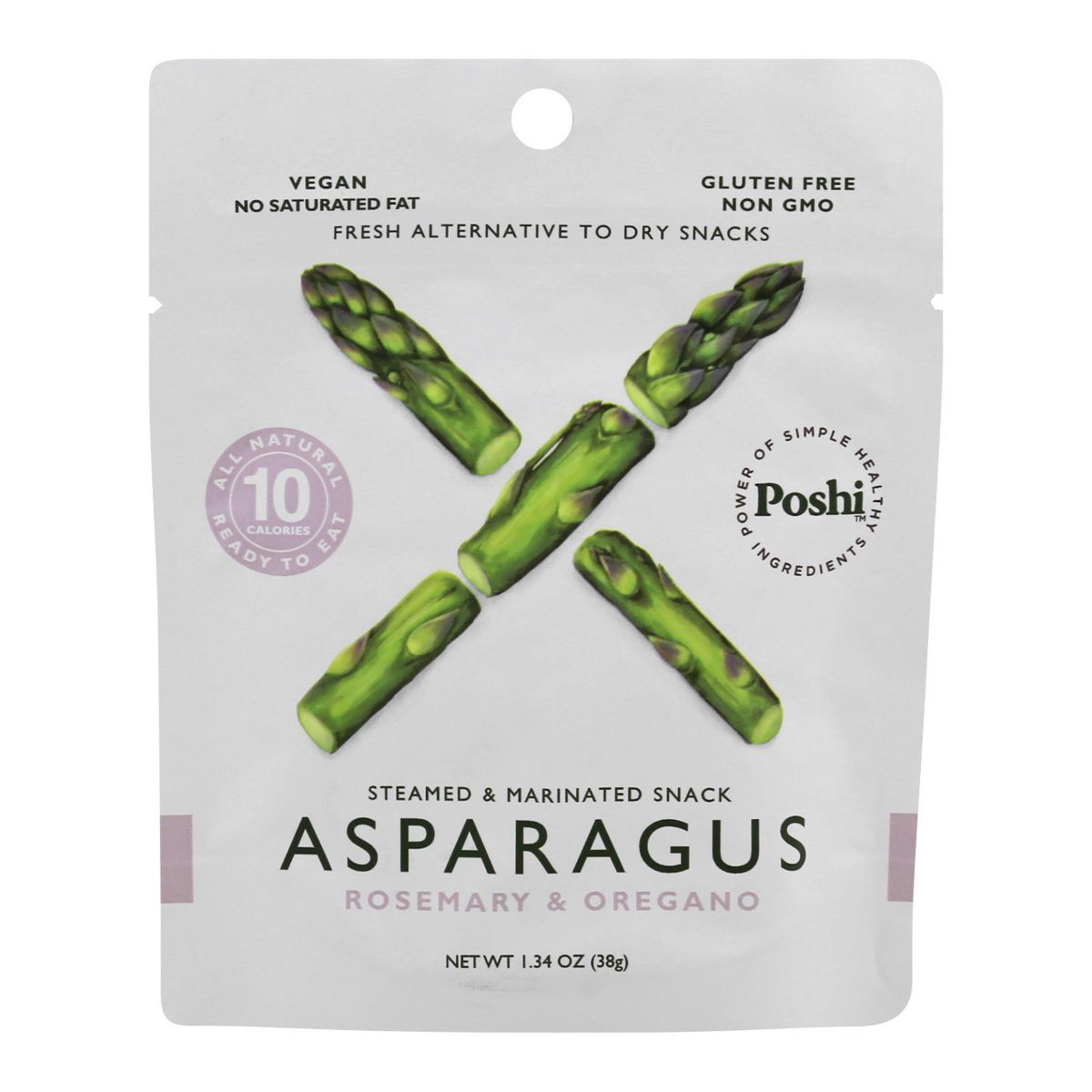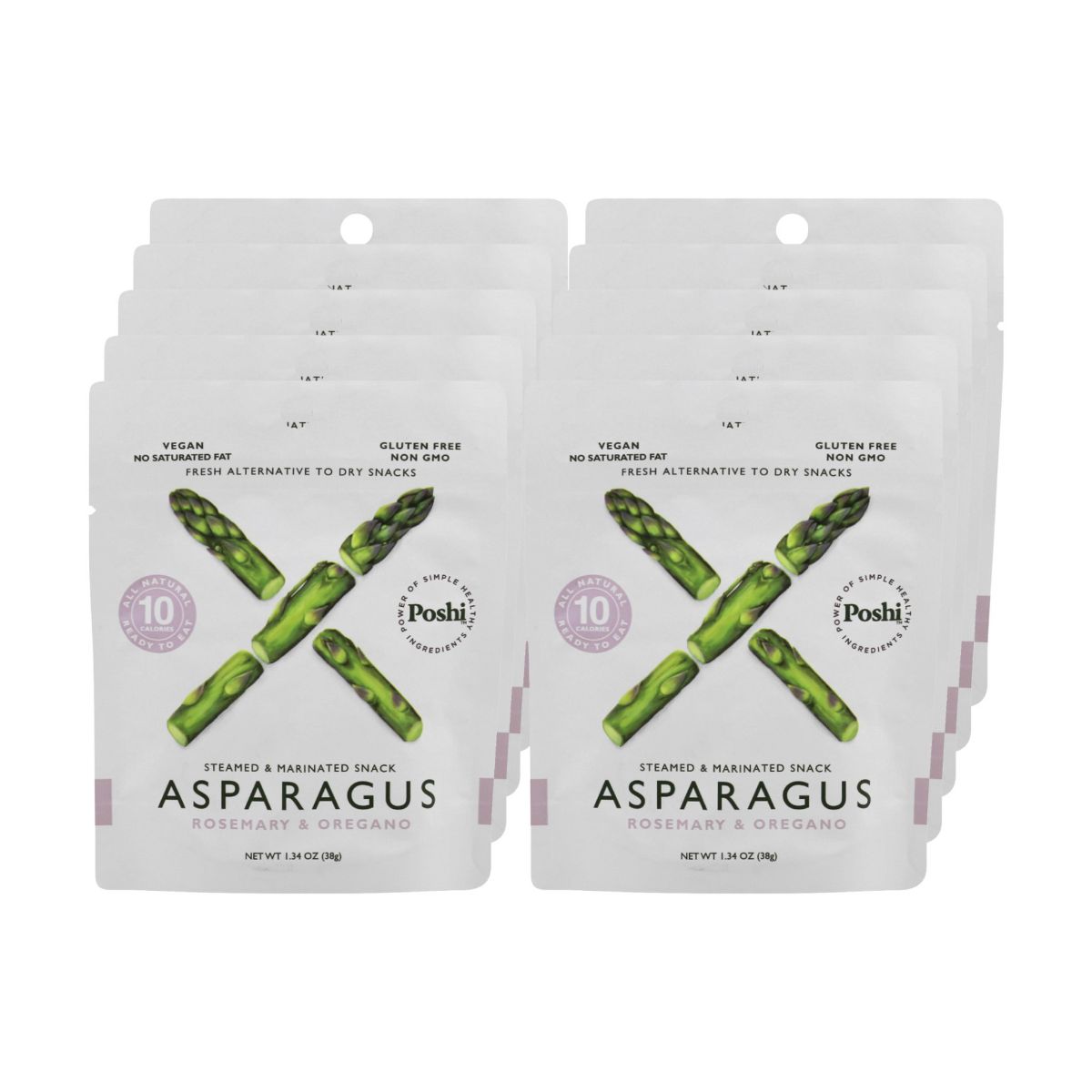 Poshi Snack de Espárragos al Vapor y Marinados con Romero y Orégano – Caja de 10/1.34 oz