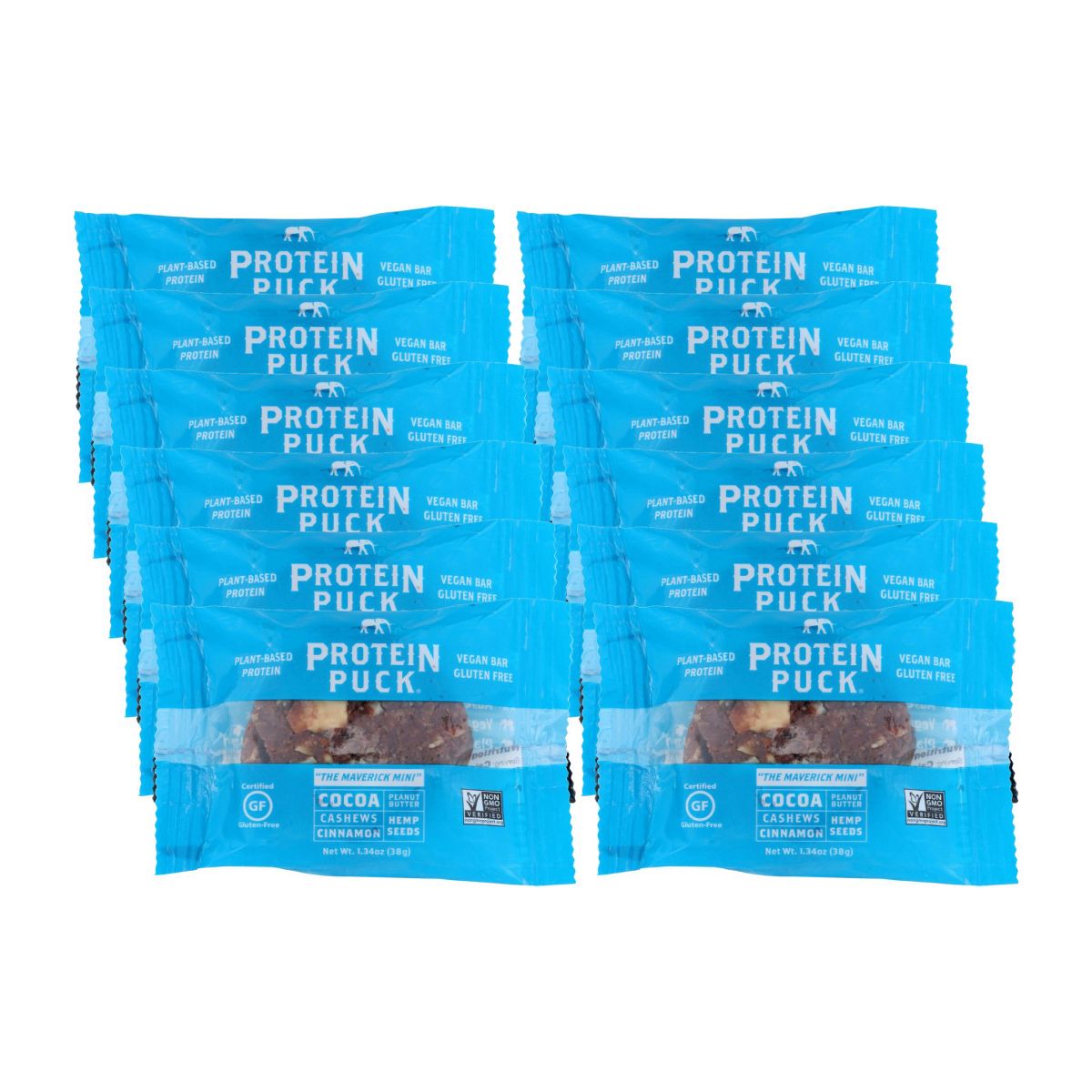 Protein Puck Mini Cocoa Cashews Canela Barra de Proteína a Base de Plantas – 12 barras, 1.34 oz