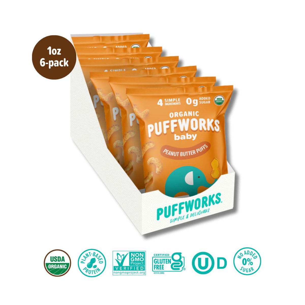 Puffworks Baby Puffs Orgánicas de Mantequilla de Cacahuate – 1 oz, 6 ct