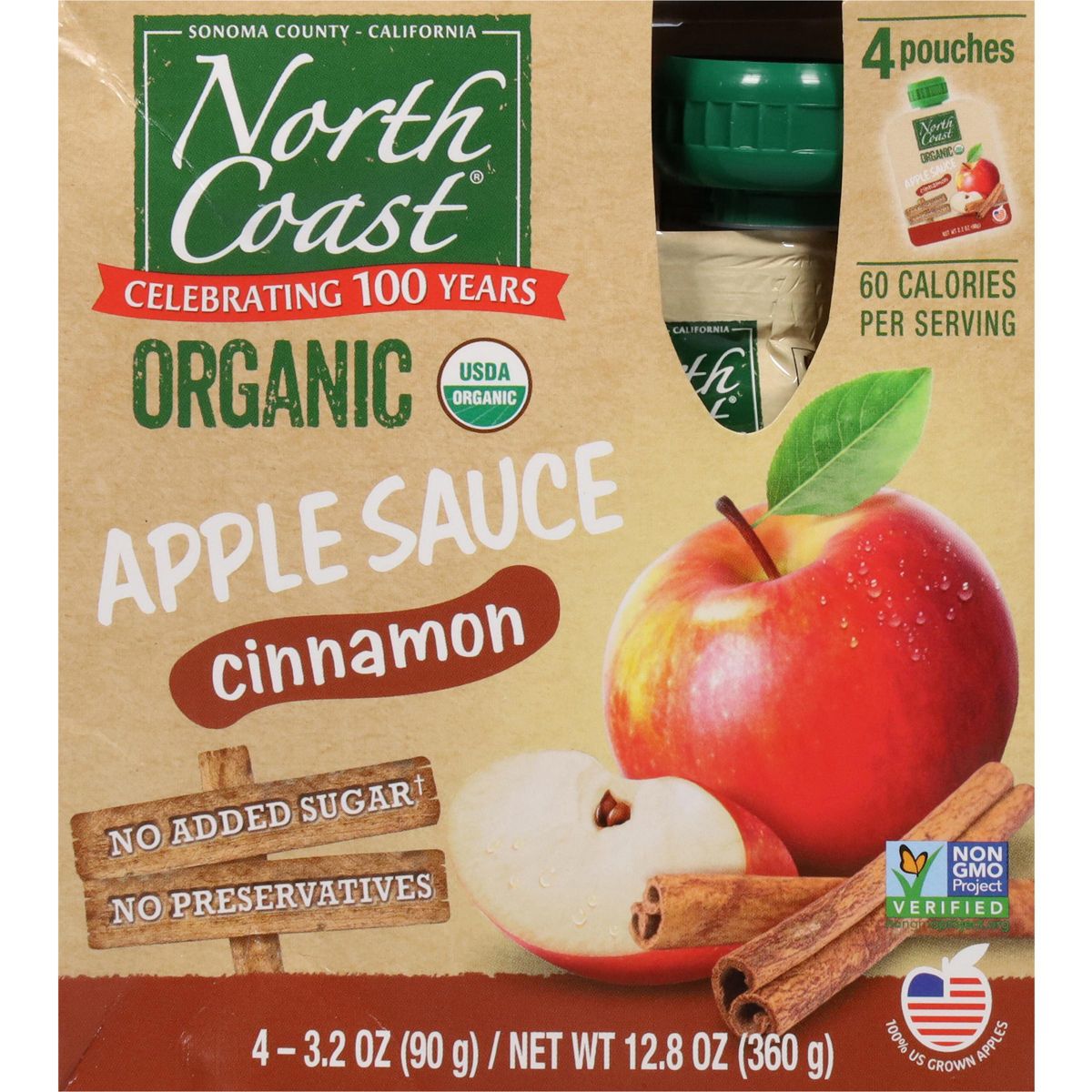 Puré de Manzana con Canela North Coast, 4 Bolsitas por Paquete, Orgánico – Caja con 6 Paquetes – 12.8 Oz