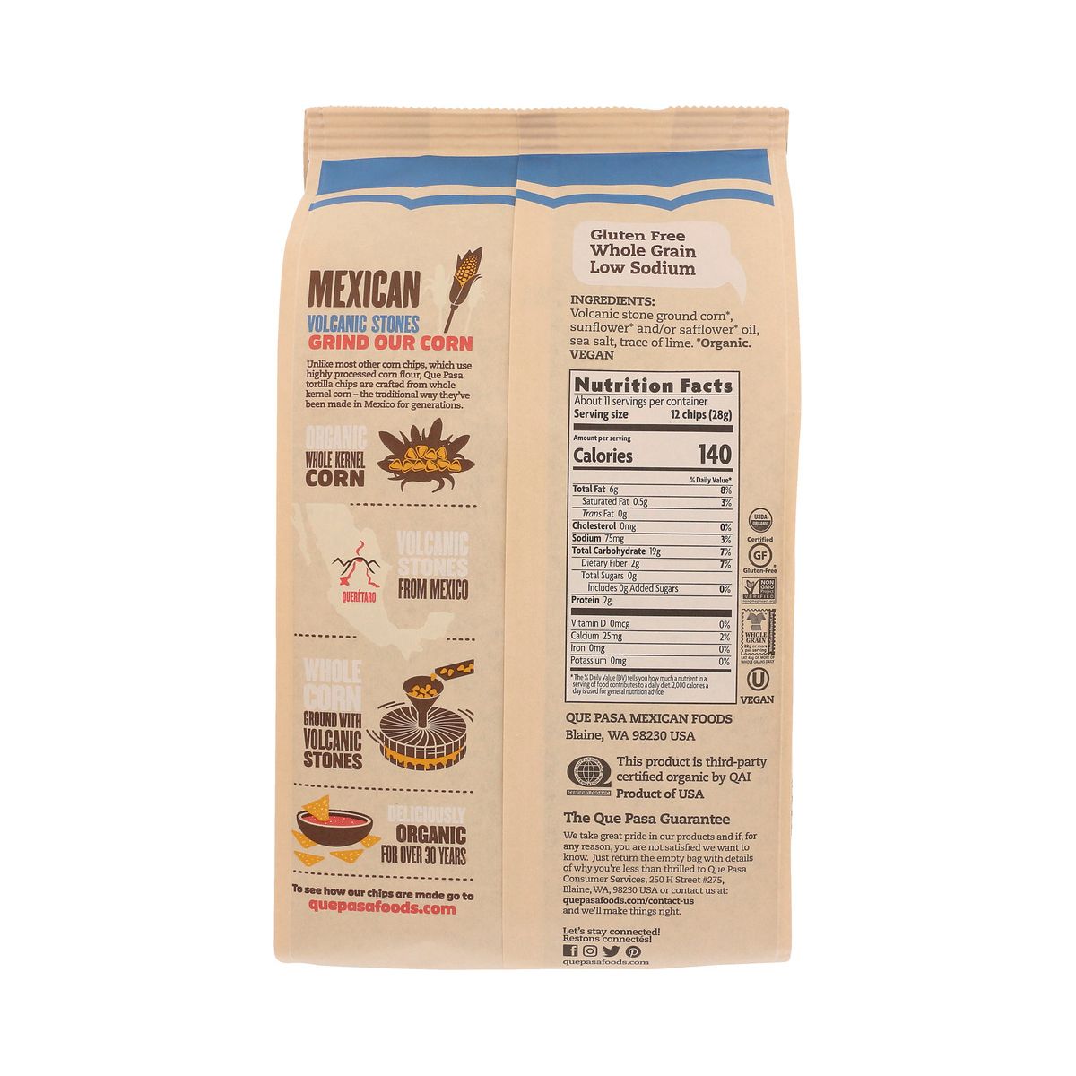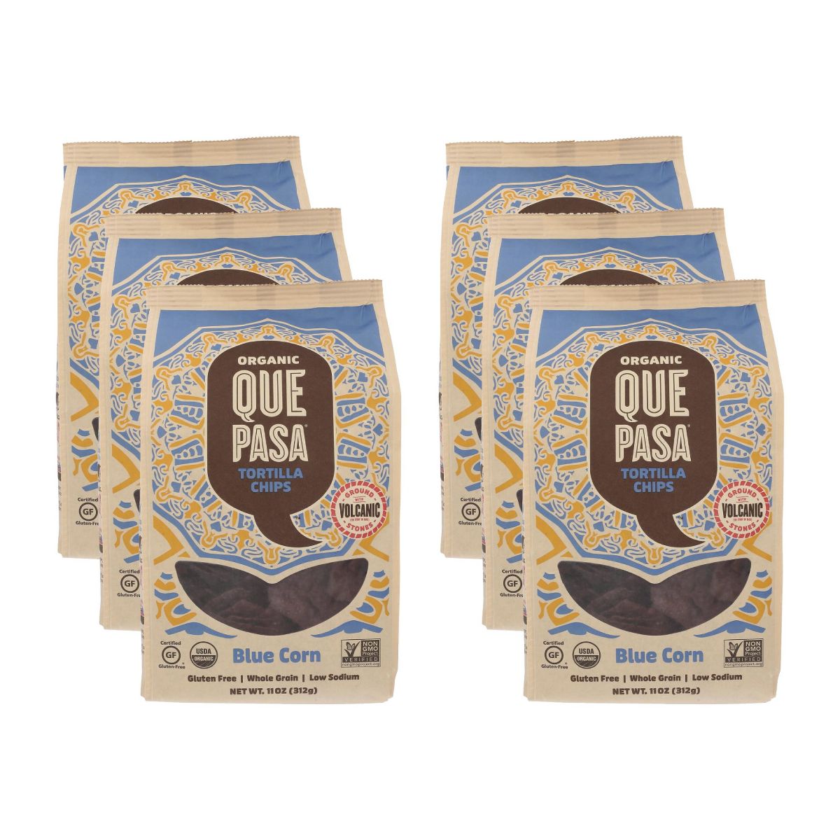 Que Pasa Totopos de Maíz Azul – Caja de 6/11 oz