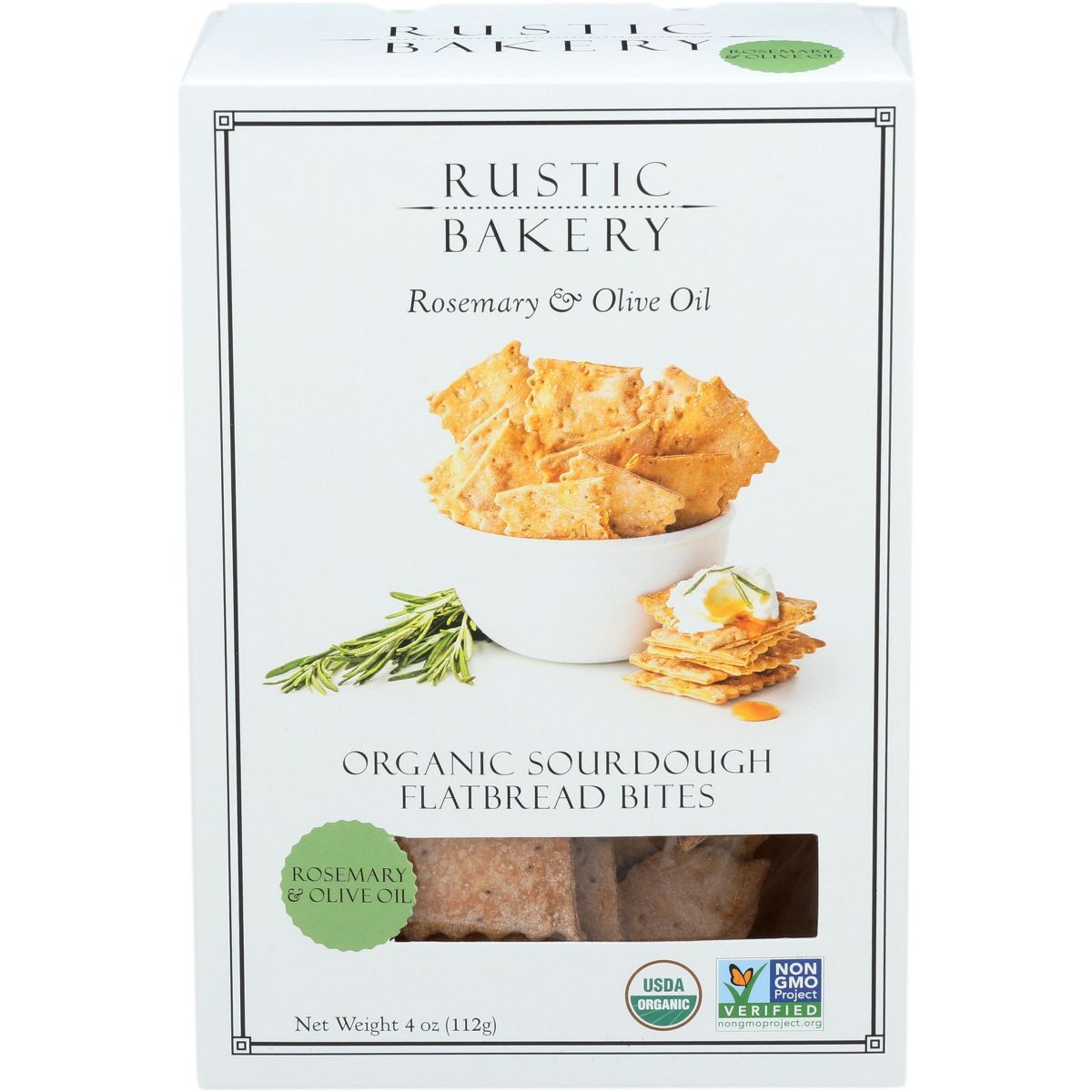 Rustic Bakery Flatbread Bites Aceite de Oliva y Romero – Caja de 12 – 4 oz