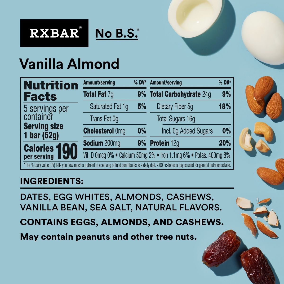 Disfruta el sabor natural de vainilla y almendra en cada mordida. RXBAR ofrece una barra de proteína masticable, sin ingredientes artificiales. ¡Energía pura…