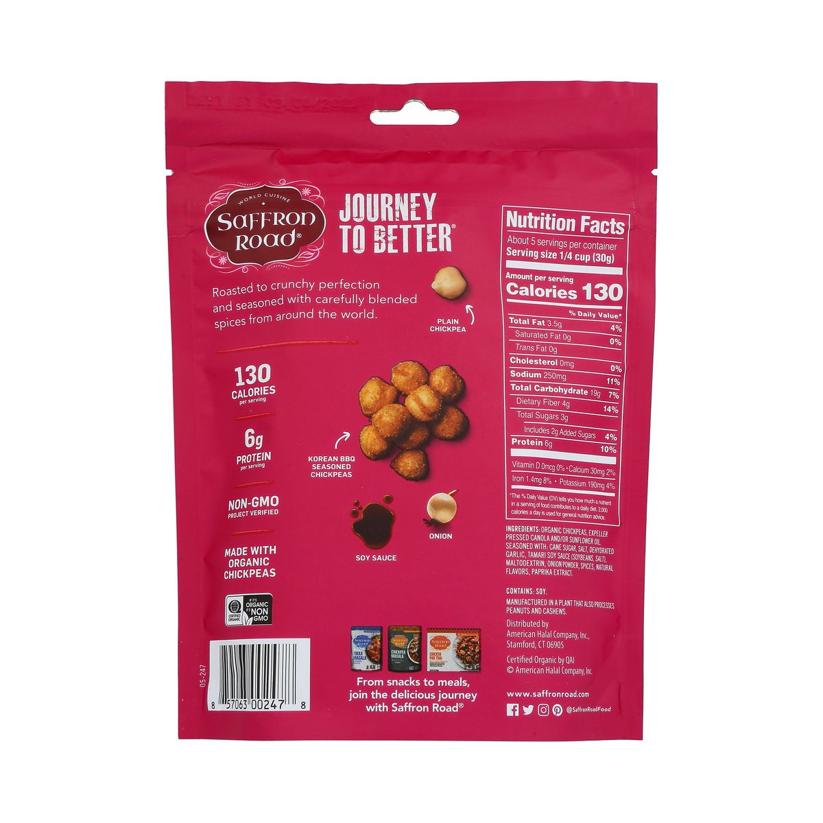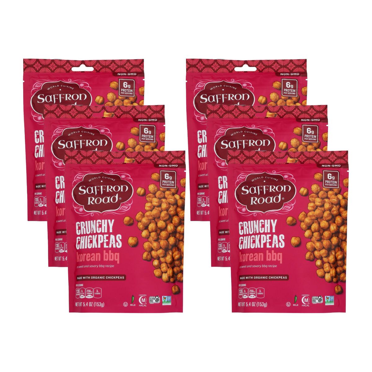 Saffron Road Garbanzos Crujientes Sabor BBQ Coreano – Caja con 6/5.4 oz
