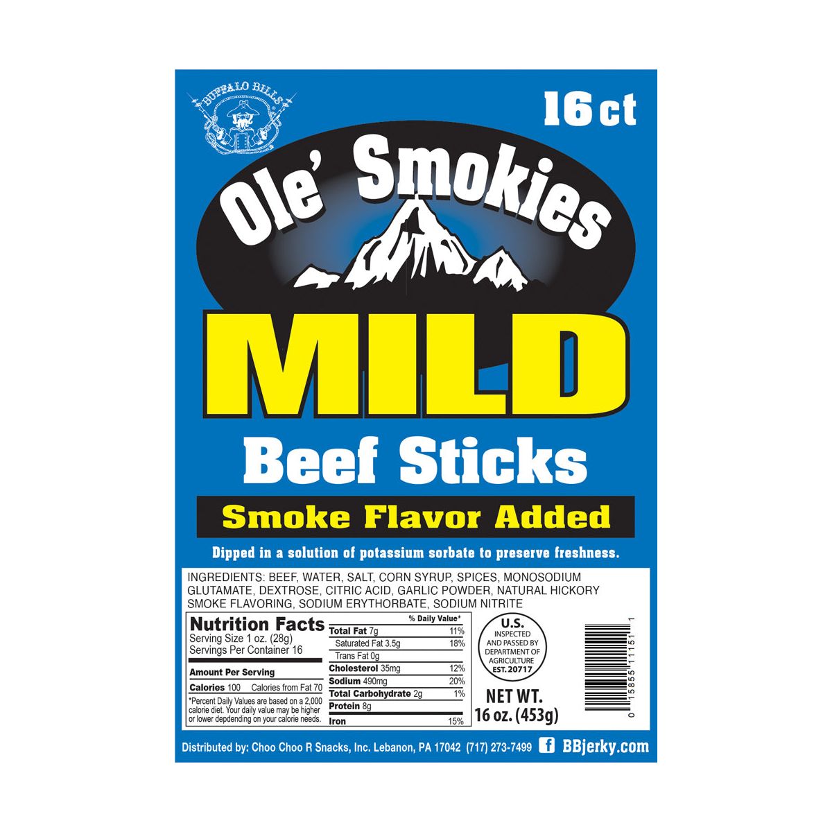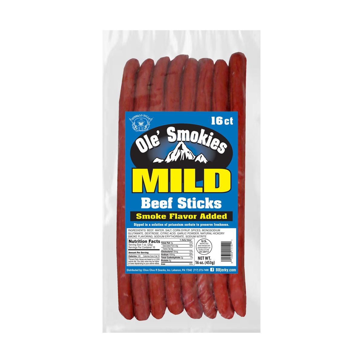 Salchichas de Res Buffalo Bills Mild Ole’ Smokies 16 ct a Granel 9 Pulgadas (dos bolsas de 1 lb)