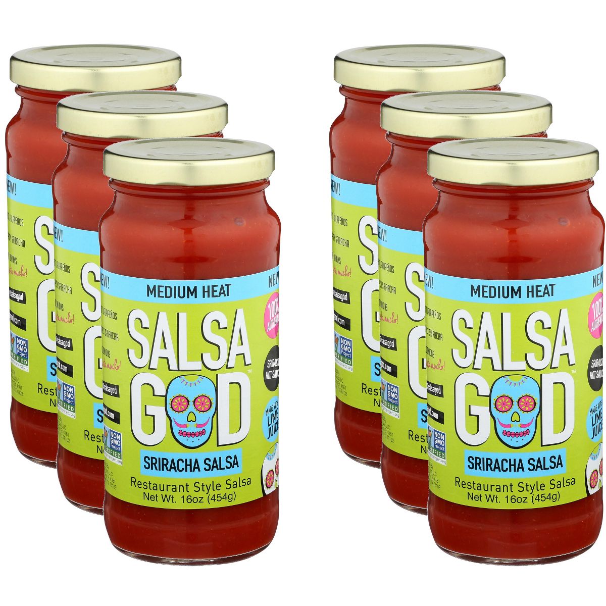 Salsa God Sriracha. Caja con 6 botellas de 16 oz. Salsa picante y versátil, sin alérgenos mayores. ¡Llena tu cocina de sabor!