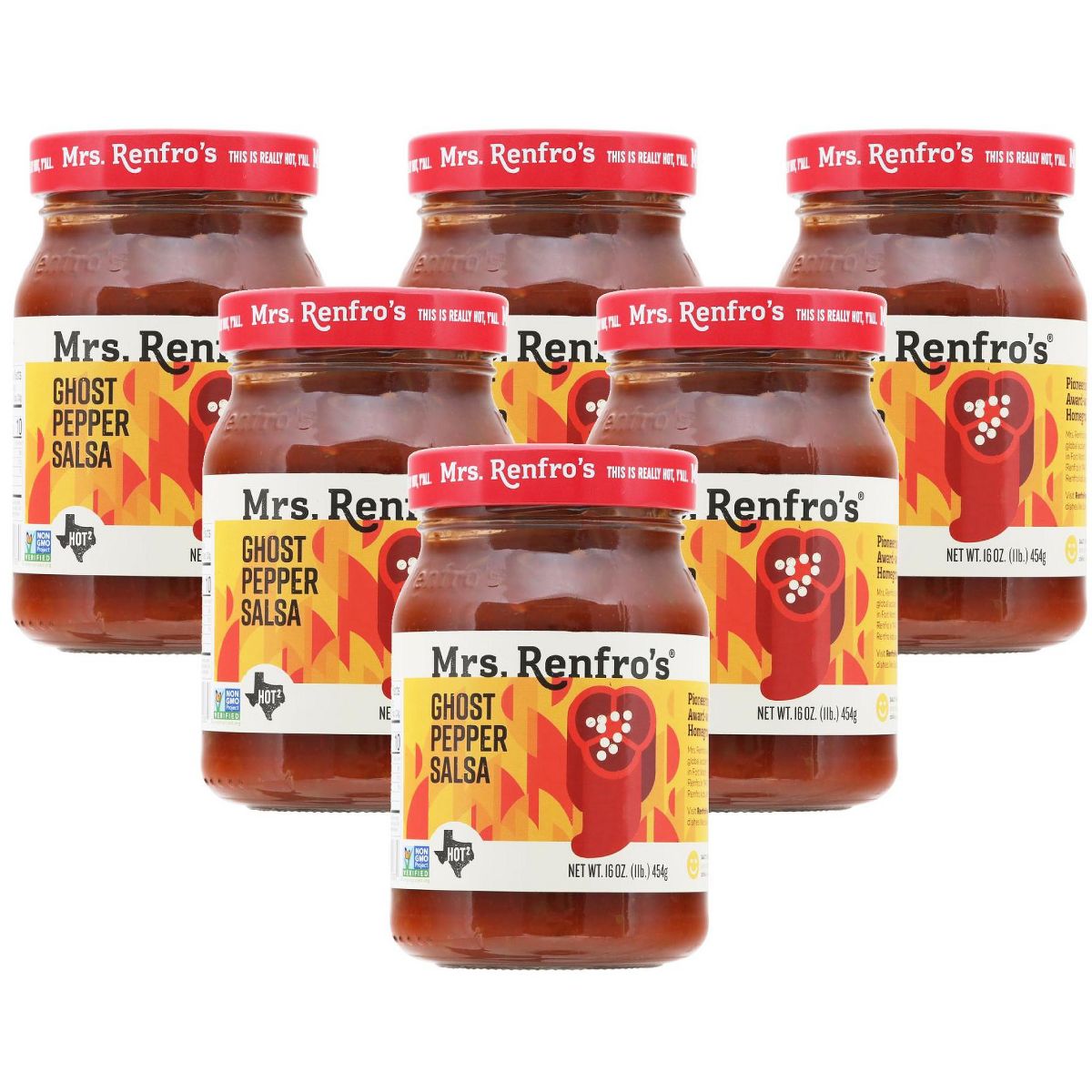 Salsa Mrs Renfro Ghost Pepper – pack de 6, 16 oz