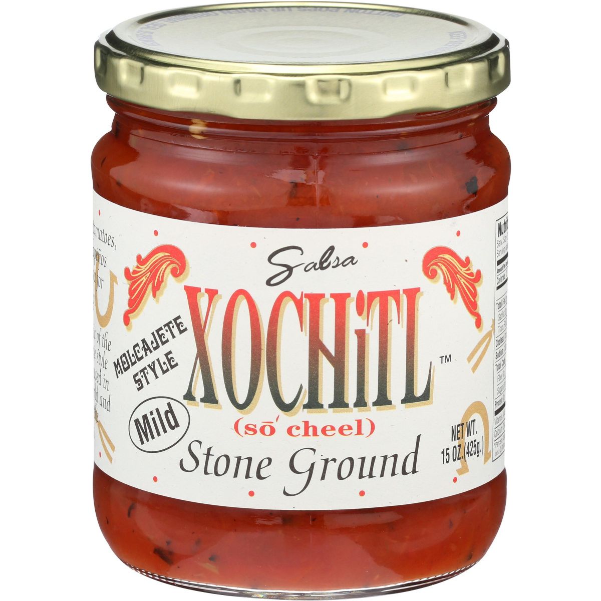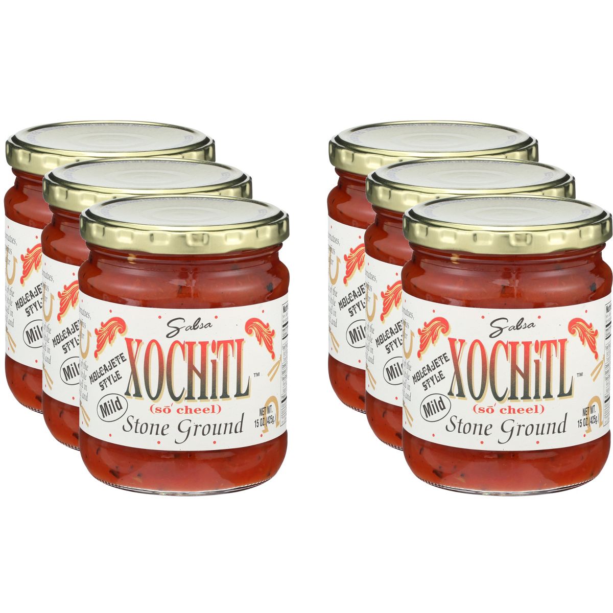 Salsa Xochitl molida a piedra, sabor suave. Ideal para tus guisos. Caja con 6 frascos de 15 oz. Sin alérgenos principales.
