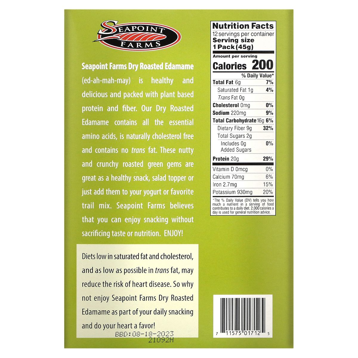 Edamame tostado con sabor wasabi de Seapoint Farms. Snack crujiente y picante, ideal para disfrutar en cualquier momento. ¡Pruébalo!