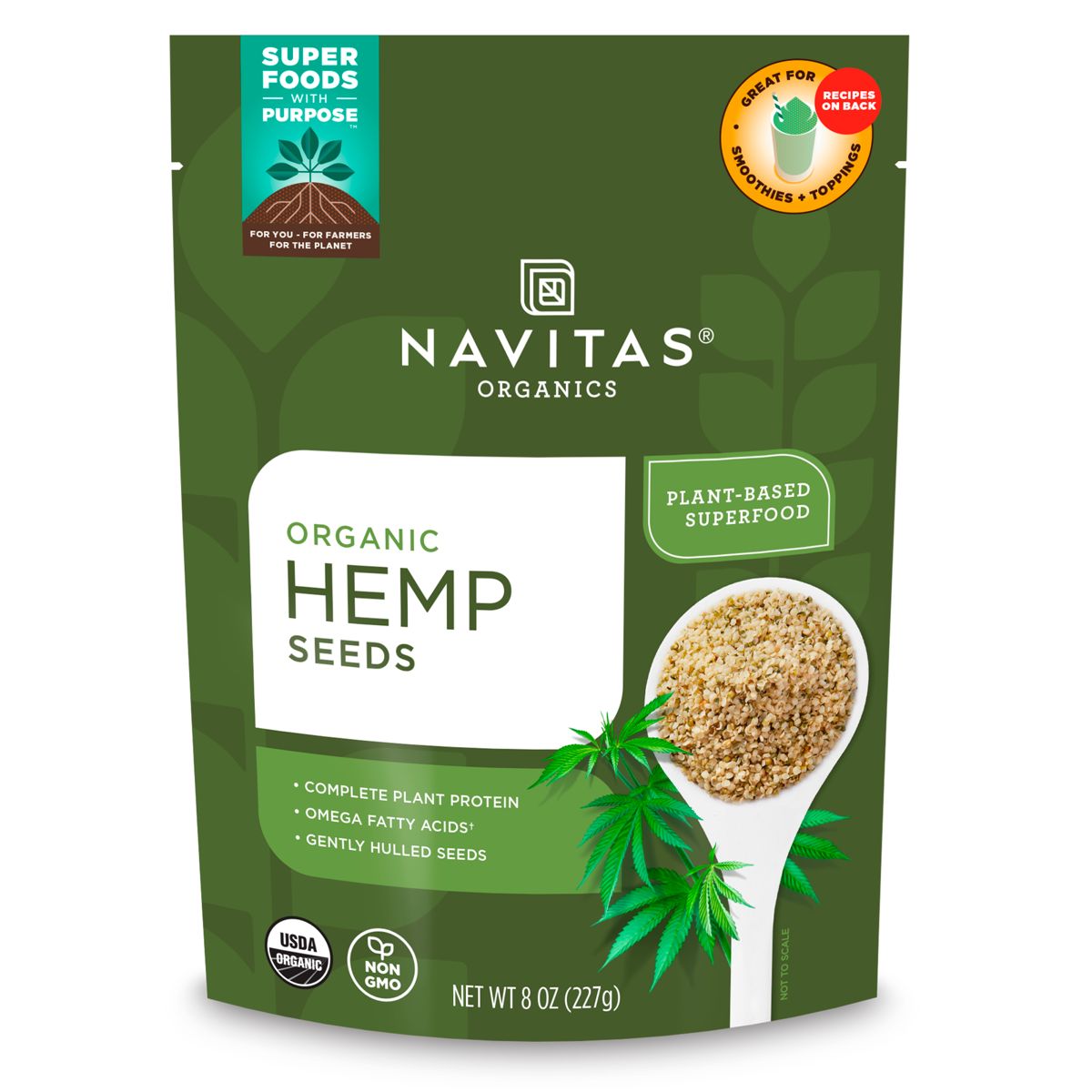 Semillas de Cáñamo Navitas Organics. Orgánicas, sin gluten y verificadas como no transgénicas. Añade proteína y nutrientes esenciales a tus comidas.