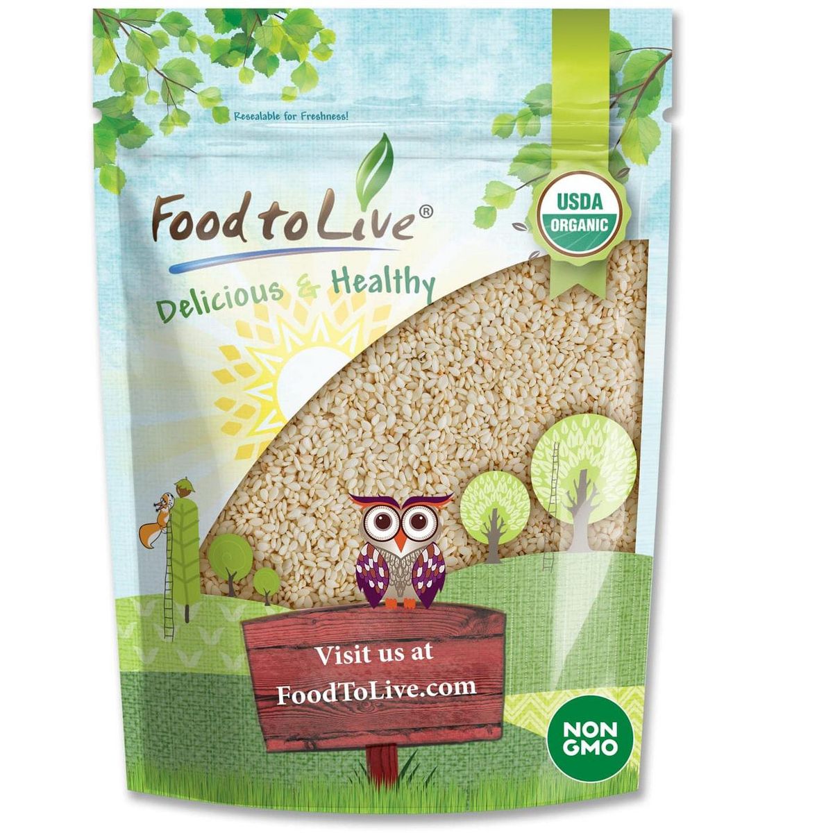 Semillas de sésamo orgánicas sin cáscara de Food to Live. Crudas, no transgénicas, kosher y veganas. Perfectas para tus recetas saludables.
