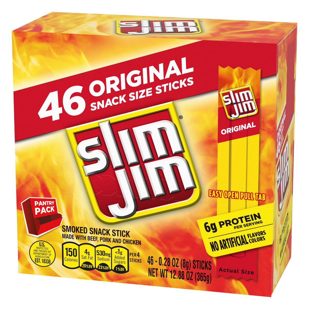 Disfruta el sabor ahumado original de Slim Jim. Perfectos como botana, con 6g de proteína por porción. ¡Pide tu paquete de 46 piezas ahora!