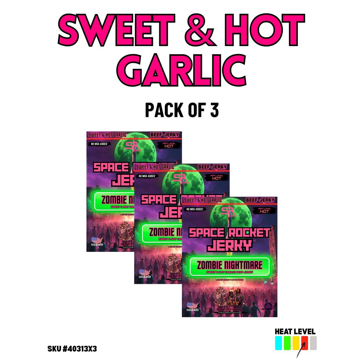 Space Rocket Beef Jerky de Res Sabor Ajo Dulce y Picante 2.5 oz Paquete de 3