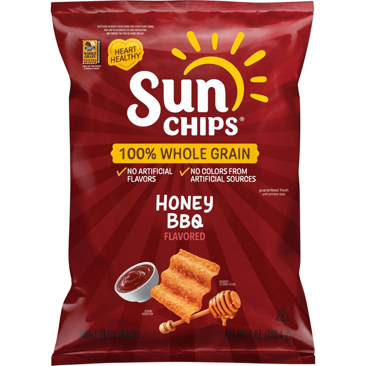 Papas SunChips sabor BBQ con Miel. Disfruta el crujido único y el balance perfecto entre dulce y ahumado en cada chip. ¡Pruébalas!