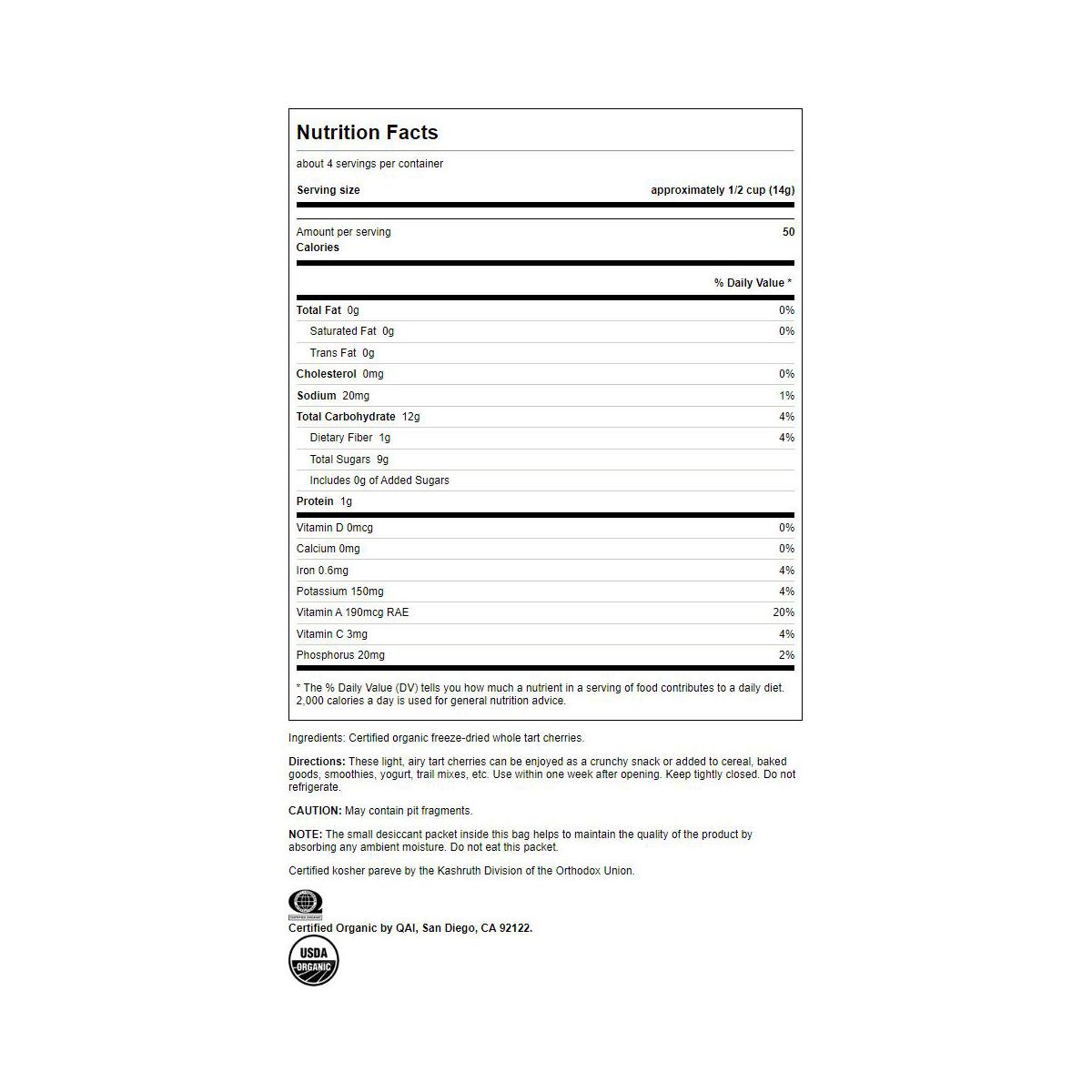 Swanson Cerezas Ácidas Liofilizadas Orgánicas Certificadas, Crujientes y Dulces con Antioxidantes, Ideales para Agregar al Cereal, 2 oz