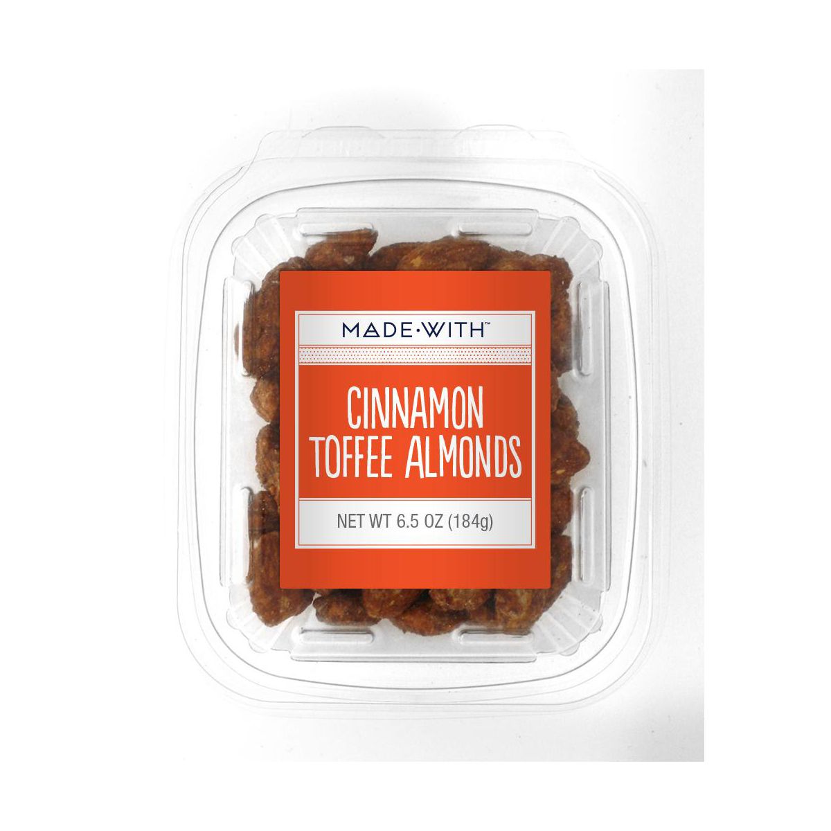 Disfruta el toffee de canela y almendra MADE WITH. Paquete de 12 tarros de 6.5 oz. Crujiente, dulce y listo para compartir. ¡Pide el tuyo!