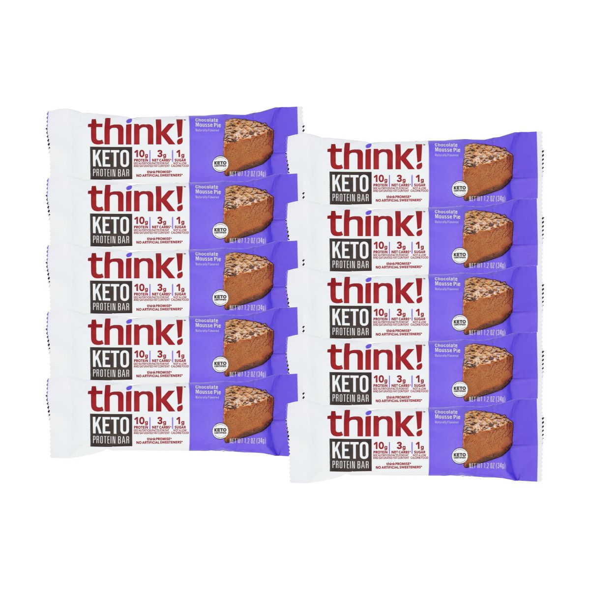 Think! Chocolate Mousse Pie Barra de Proteína Keto – 10 barras, 1.2 oz