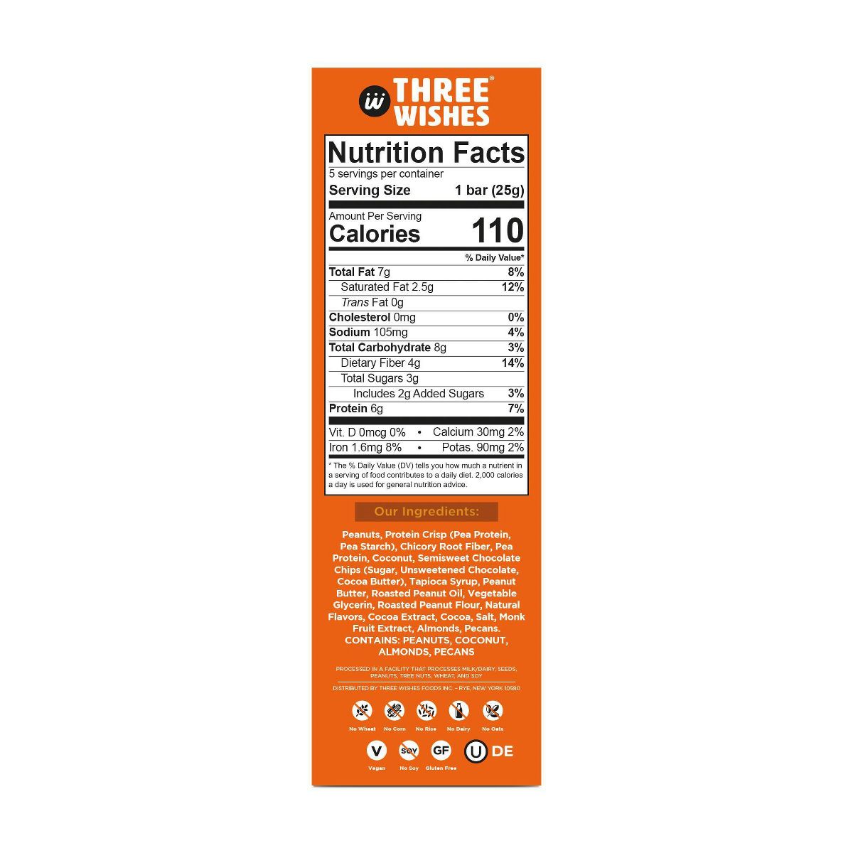 Three Wishes Barras de Granola con Mantequilla de Cacahuate – 4.4 oz/5 ct