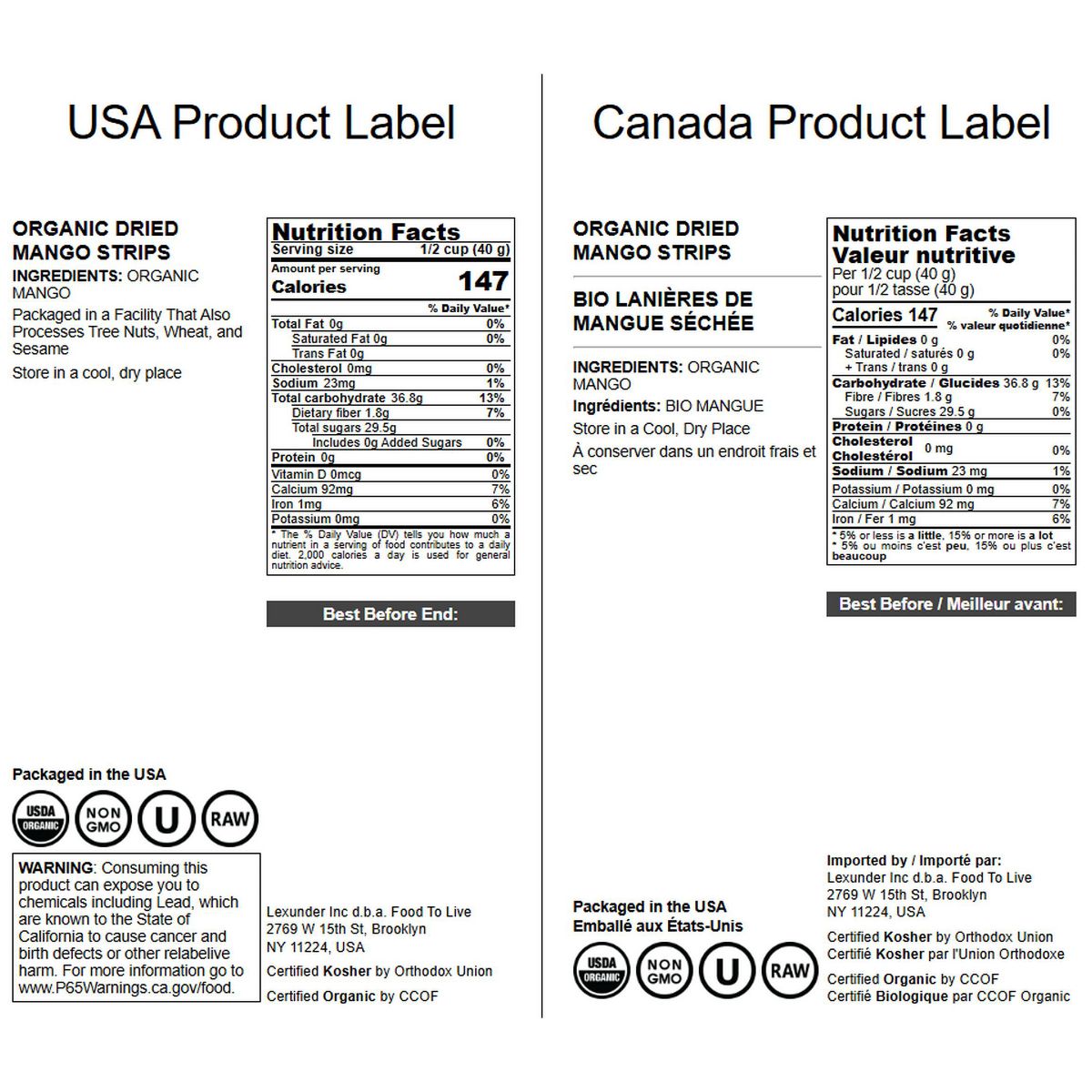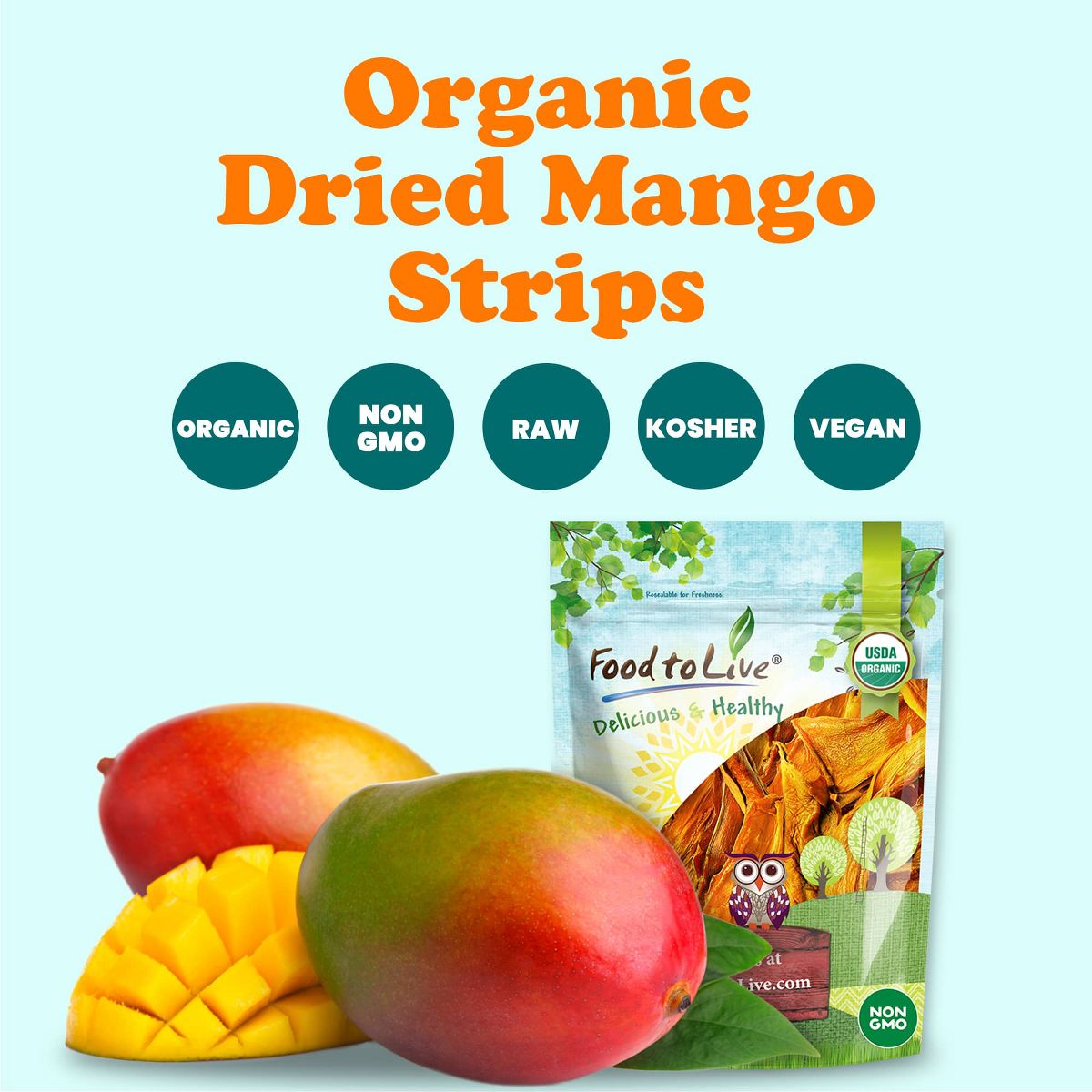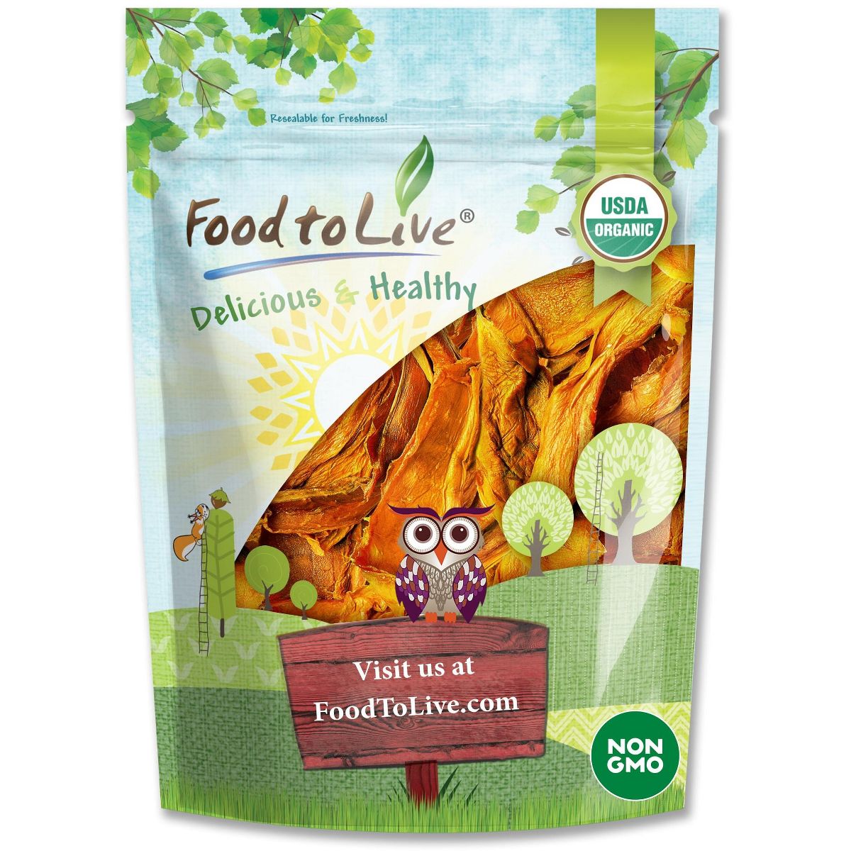 Disfruta las deliciosas Tiras de Mango Seco Orgánico de Food to Live. Un snack natural, dulce y saludable, perfecto para cualquier momento del día.