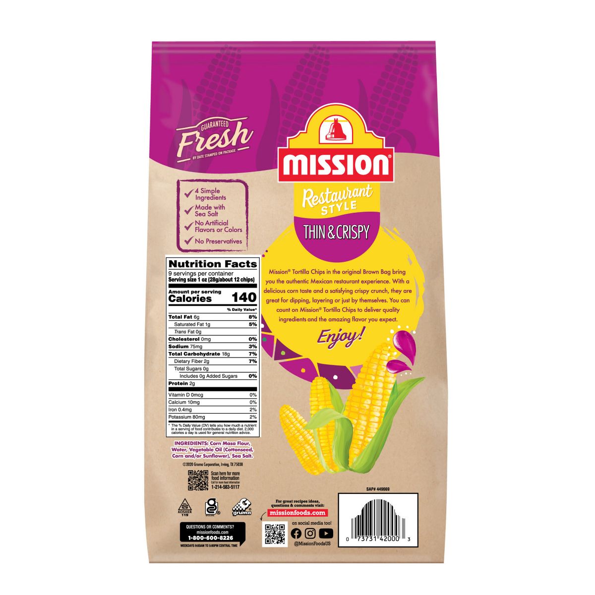 Totopos de Maíz Amarillo Mission Thin & Crispy – 9 oz