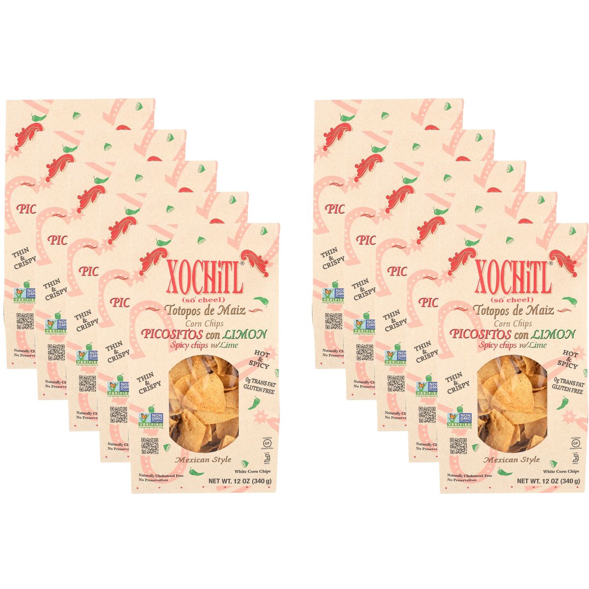 Totopos de Maíz Xochitl Picositos con Limón para Dipping – Caja con 10 – 12 oz