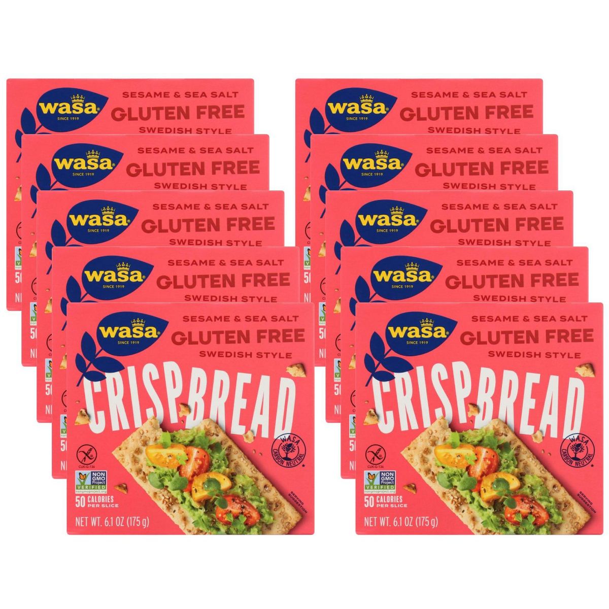 Wasa Crispbread de Sésamo y Sal Marina Sin Gluten – Caja con 10 paquetes de 6.1 oz