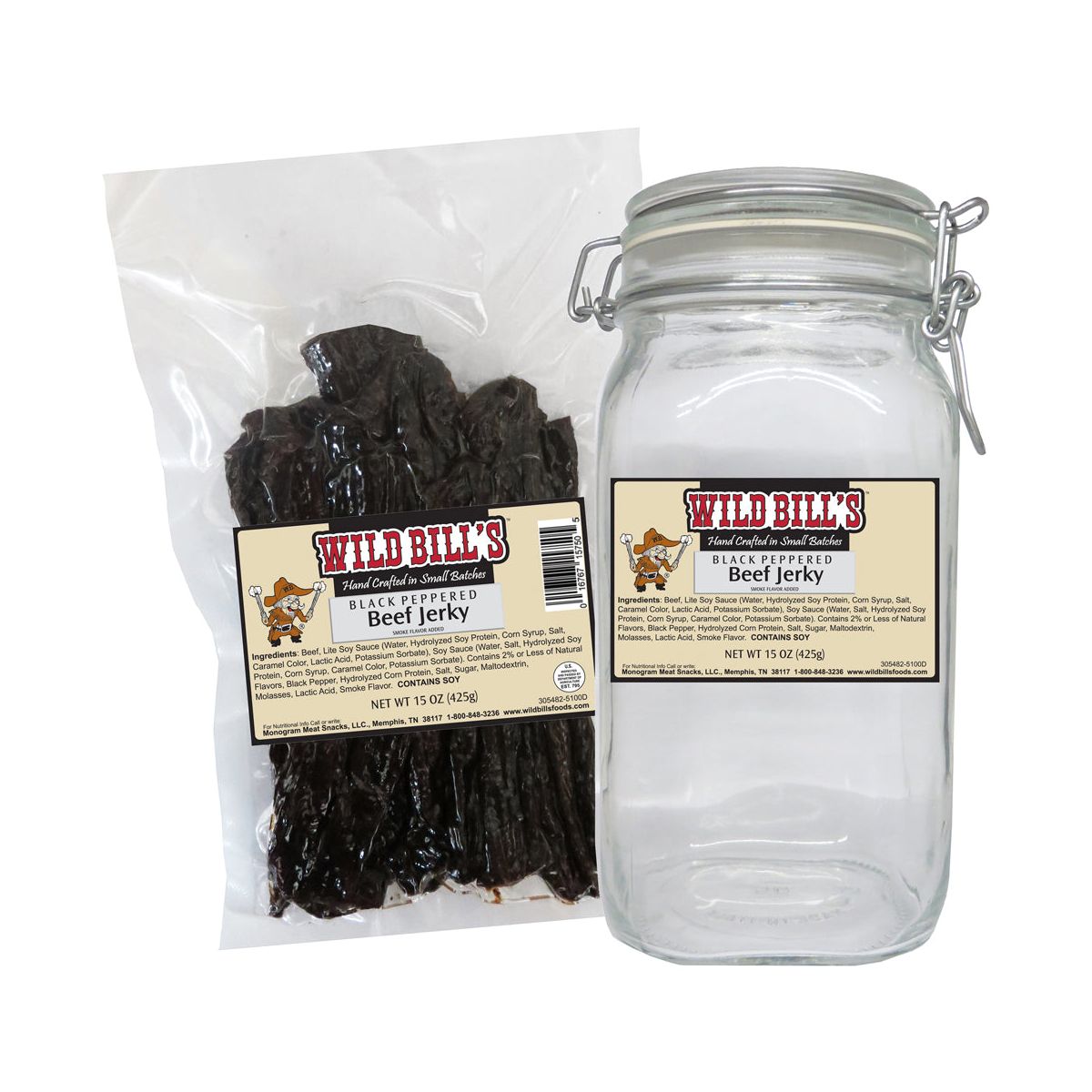 Wild Bill’s Carne Seca con Pimienta Negra Kit de Inicio de una Bolsa (una bolsa de 15 oz y 1 frasco)