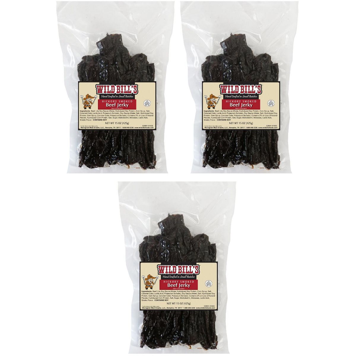 Wild Bill’s Original Hickory Smoked Beef Jerky Kit de Inicio de Tres Bolsas (tres bolsas de 15 oz y 1 frasco)