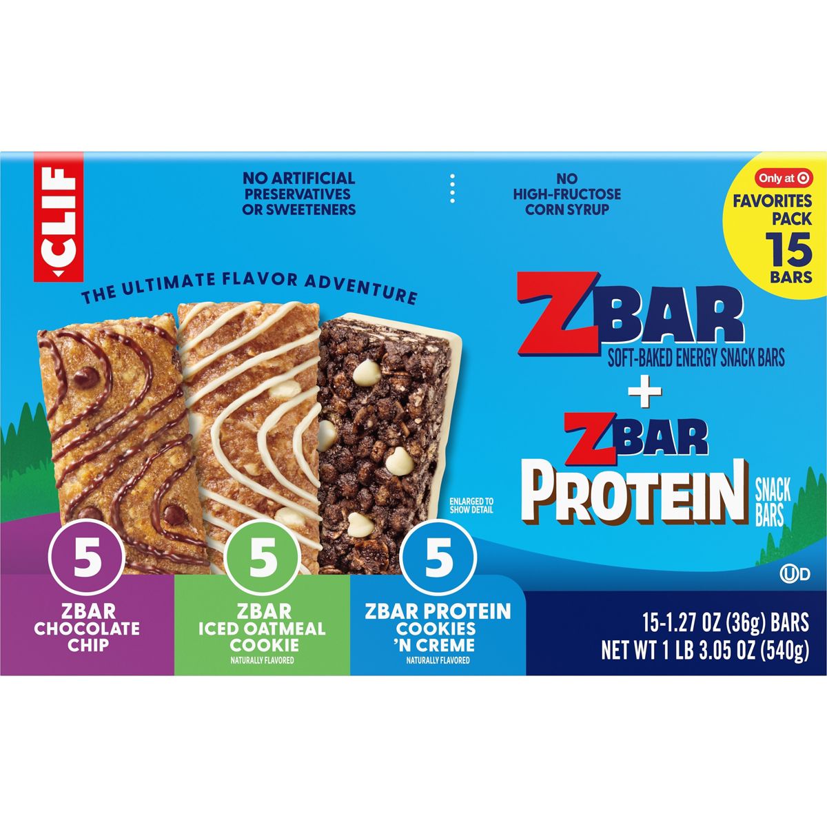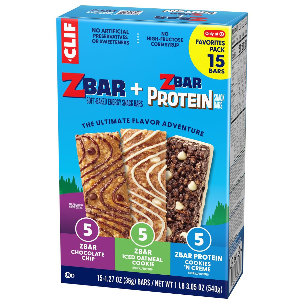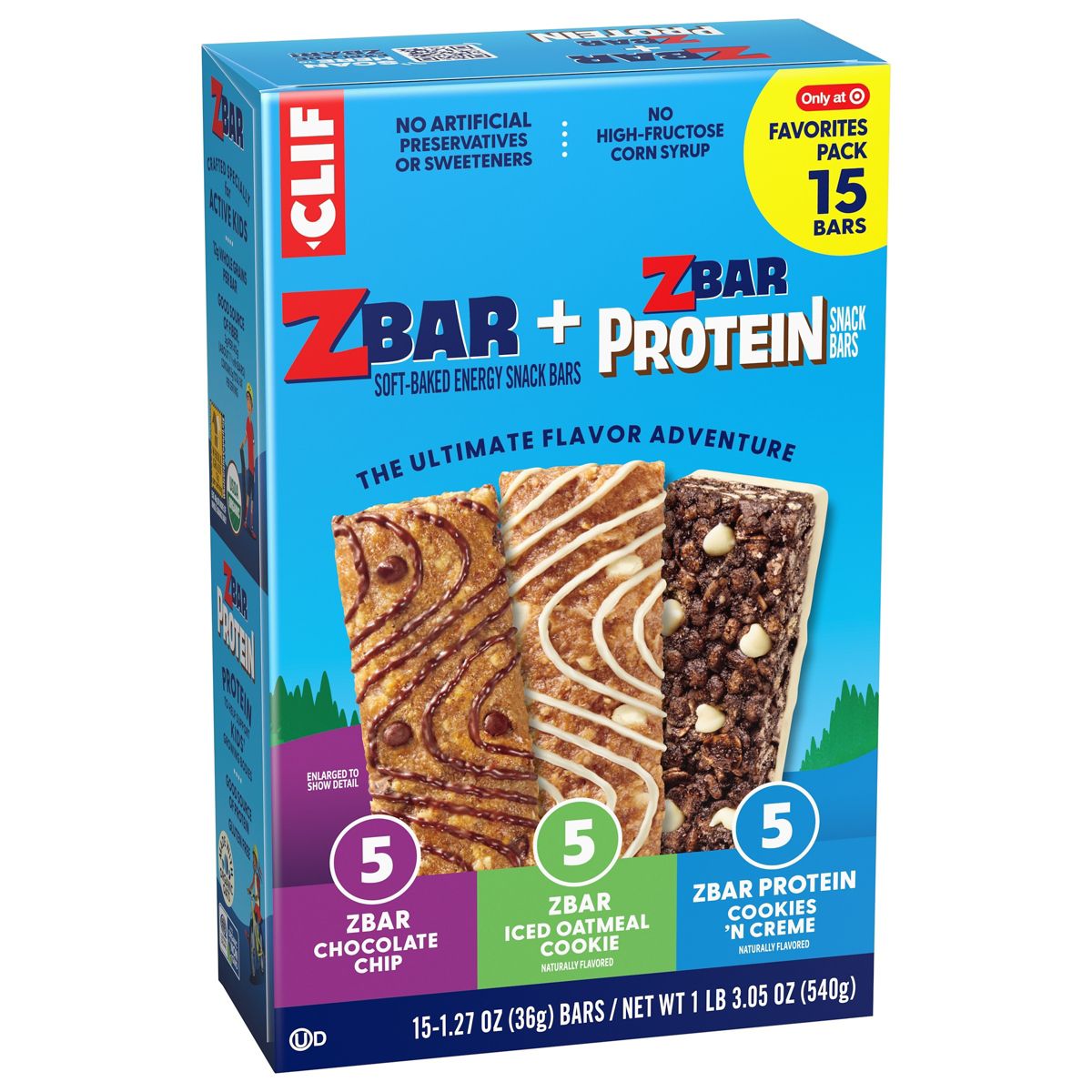 Zbar y Zbar Protein Chocolate Chip, Iced Oatmeal Cookie, Cookies and Crème Granola Bar Variety Pack Hecho con Avena Orgánica – 19.05 oz/15 pk